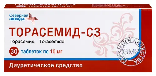 - активное вещество: торасемид – 10 мг